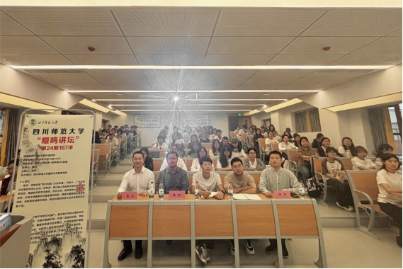 2025年10月16日下午4点,国际中文教育学院“嘤鸣讲坛”第24期第167讲在四川师范大学狮子山校区第一教学楼301教室顺利举行。主讲人省级非遗“四川吟诵(川北吟诵)”传承人,广元历史与文献研究中心主任、研究员陈洪教授为大家带来“古诗文的吟诵世界”的学术讲座。本次讲座由四川师范大学国际中文教育学院主办,学院向东博士主持。国际中文教育学院、文学院部分师生参加本次讲座。