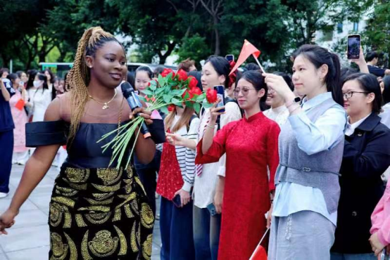 当天中午,成龙校区馨雅轩餐厅前举办了丰富多彩的外国风情文化展。我院来自法国、巴基斯坦、尼日利亚、喀麦隆、吉布提、阿塞拜疆、越南等国的留学生,通过歌曲演唱、舞蹈表演等多种形式,生动展示了各自国家的文化特色与艺术风采。活动现场气氛热烈,留学生们精彩的才艺展示和亲切的互动交流,充分展现了我校国际化办学的成果与多元文化的独特魅力。