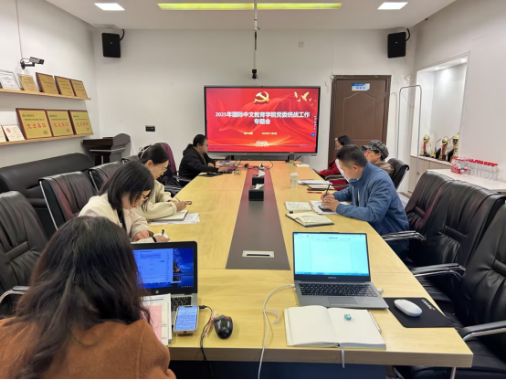 2025年11月3日,国际中文教育学院党委召开统战工作专题会议。会议由党委书记马晓红主持,学院党委委员、党支部书记、专职组织员及辅导员参加会议。